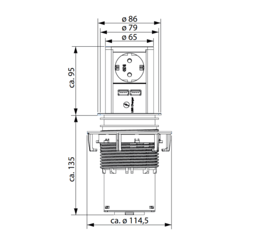 Het Bachmann Elevator inbouw stopcontact met USB is een hoogwaardige en praktische oplossing voor het discreet toevoegen van stroom- en laadpunten in keukens, kantoren en werkplekken. Dit stopcontact beschikt over 1 randaarde stopcontact (230V) en een USB Charger, ideaal voor het opladen van smartphones, tablets en andere USB-apparaten.